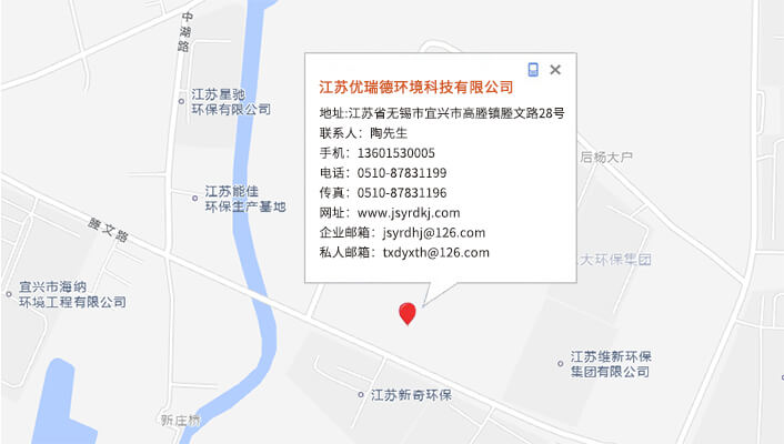 江蘇優(yōu)瑞德環(huán)境科技有限公司地址:江蘇省無(wú)錫市宜興市高塍鎮(zhèn)塍文路28號(hào)